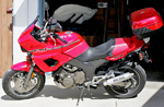 Silver-ish 2003 900, 70k miles, PilotRoad3 front tyre (new@65k) & PR2 rear(new at 69k), Renthal 755 bars with KTM handguards, oxford unheated grips, power commander 3usb, scorpion titanium exhausts, standard screen with vario winglet thingy, stainless grill, oem centre stand, bagster tank cover, givi monokey topplate mounted on grabrail with V46 topbox, Givi PL pannier rails with E21s, crash bungs, mirror extender thingys, Halfords Advanced Laser Blue brillance bulbs, 21w led spotlights, touring scottoiler with leehenty dual nozzle, Autocom with blueteeth & PMR radio, TomTom Rider3 Urban, winter style anti-dazzle coating